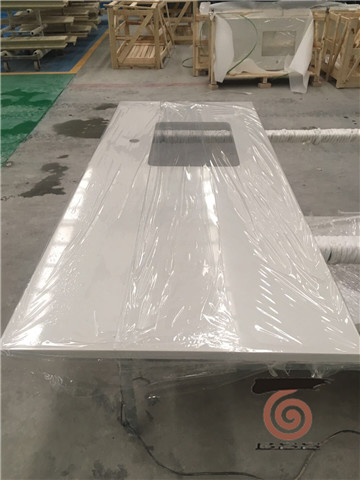 Quartz stone and granite countertops andvanity tops are our major products for American market. We mainly use a few types of white quartz andblack granite. The major sizes such as 65”x25 1/2” and 75 5/8”x22”, 108”x25 1/2”etc. Most of quartz stone kitchen topscontain sinks cutout and laminated edges.