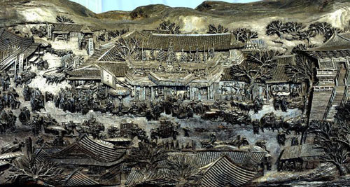 The work has shaped nearly 500 characters, accompanied by a magnificent historical scene, three-dimensional show of three British war Lu Bu, war Changban slope, grass boat by arrows, fire Chibi, empty city and other magnificent war scenes. Works with the unique color of ebony, texture, luster and ebony both stone charm and wood quaint, its "thin, through, leak, Mei, Wei, wonderful" features to explore and add art exaggeration, glowing charming Light, vividly demonstrated the ancient battlefield of the Three Kingdoms swords, to show people a magnificent historical picture, called "the spirit of the day must, to the treasure, the meaning of the people."