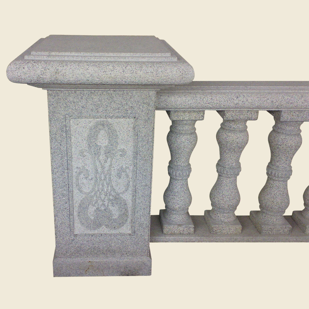 The outdoor balustrade is also common tobe made in granite. This type of baluster has slight carving in middle part tomake a beautiful look. The post is alsocarved decorated well in flower pattern in two sides, inside can be hollow to reduce weight. It is an excellent but cheap design. You canchose other granite colors or marble.