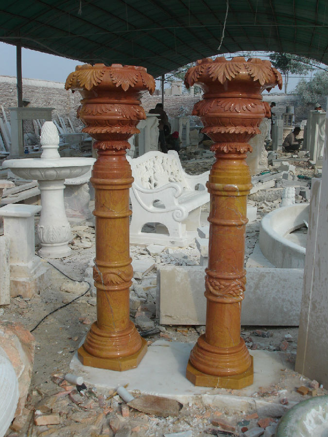 This amazing pillars style is finely made in yellow marble, top is a separate hand- carved beautiful urn. Really nice high quality marble piece to enhance the beauty of your house. Dimensions can be custom made by us and delivery time is 2 weeks to ship.