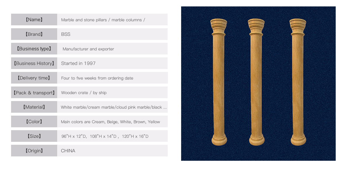 This beautiful tuscan colum is made froma warm and popular marble , galala cream with small veins. The shaped roundcapital and base matchs very well the whole design. It is widely used forinterior of house. Select such awonderful and unexpensive pillar can decorate your interior better and upgrade. Contact us today to get more information.
