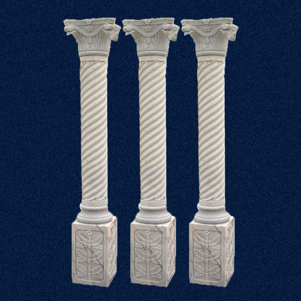 This gorgeous marble column is nicely decorated with the capital, shaft and base. Made from our local off white marble with little veins. The twisted design and artistic feastures display an upgrade for your home. The sculpted base can be changed in a round design as well. Contact us today to get more information about how to order.