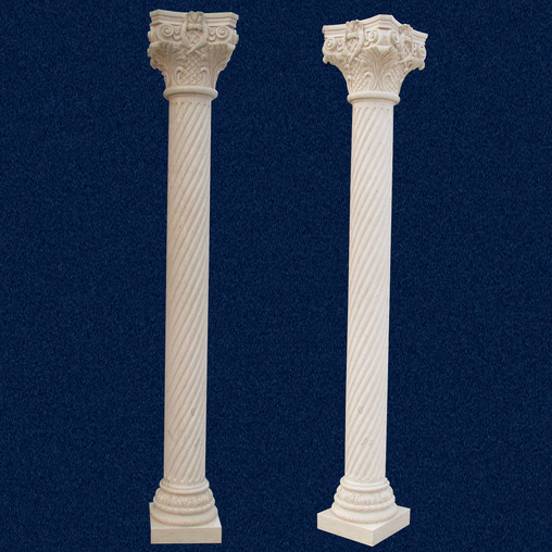 The stone column with carved crown to show beautiful work for luxury house. It also contains twisted pillar shaft body to make inside hollow to wrape concrete or metal base. Any dimensions can becustom made to suit job site.