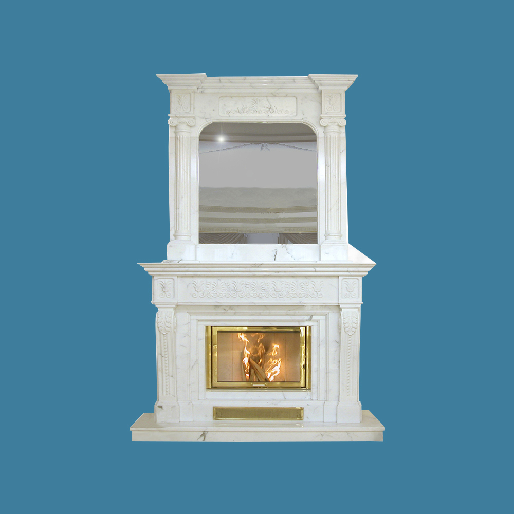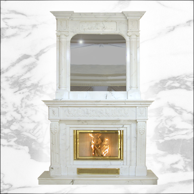 This amazing fireplace withovermantel, is finely hand carved in avery white marble. All gorgeous marble carvings and patterns are decorated wellon this grand fireplace to display in your luxury home. Material and dimensions can be custom made atyour needs. Contact us to get more purchase information immediately