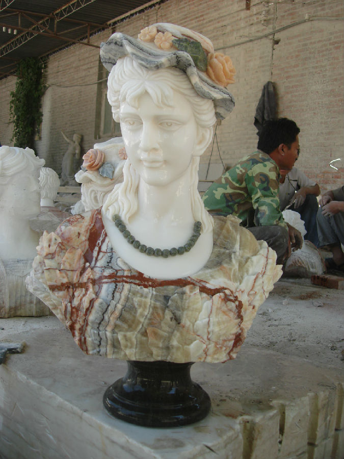 Thisexcellent woman bust is finely made in high grade natural marble. All details is hand-carved by our sculptor toshow upgrade art work. Marble of pedestal can be changed as you want, single unit or bulk order is available todeliver. Any custom design can be madeby our team and delivery time is 3 to 5 weeks.