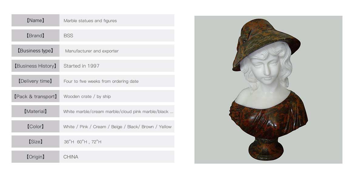 The elegant young girl bust statues ishand carved in pure white and brown marble.