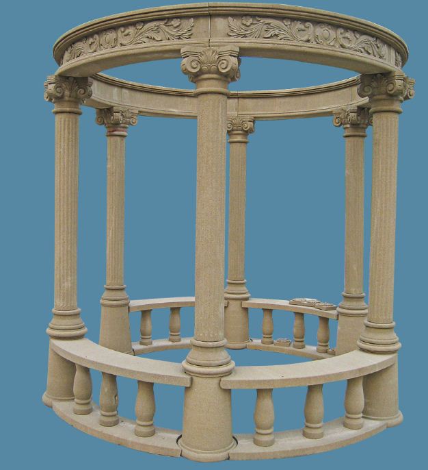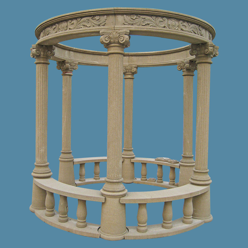 This is a major and excellent sculpture work for your estate, the sandstone gazebo features of 6 beautiful pillars dressed with balusters and matching seats. It definitely enhence the beauty of your estate. Material can be custom selected at your choice.