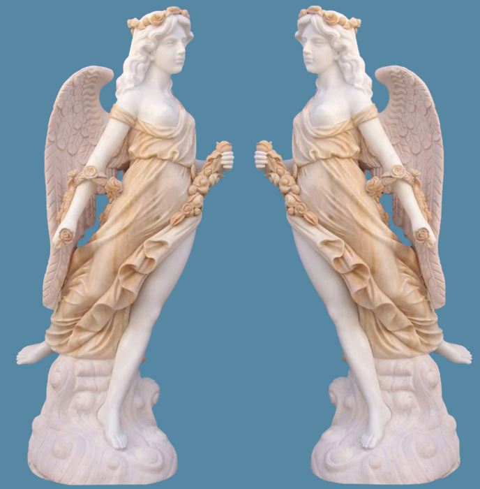 These beautiful lady figures on rock are finely made in white and pink marble.