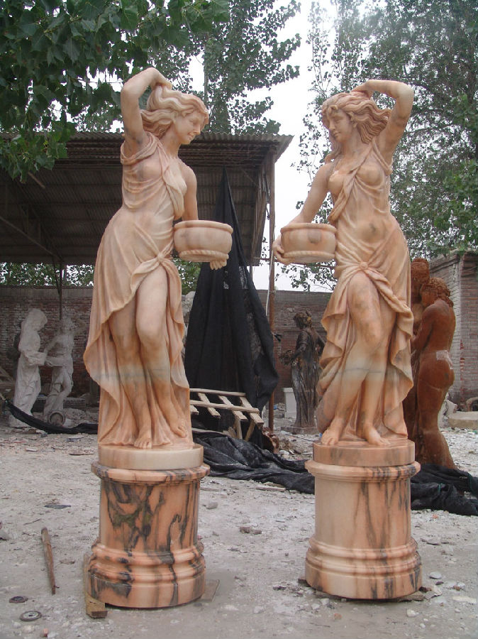 These amazing figure sculptures are finely made in a beautiufl pink marble.