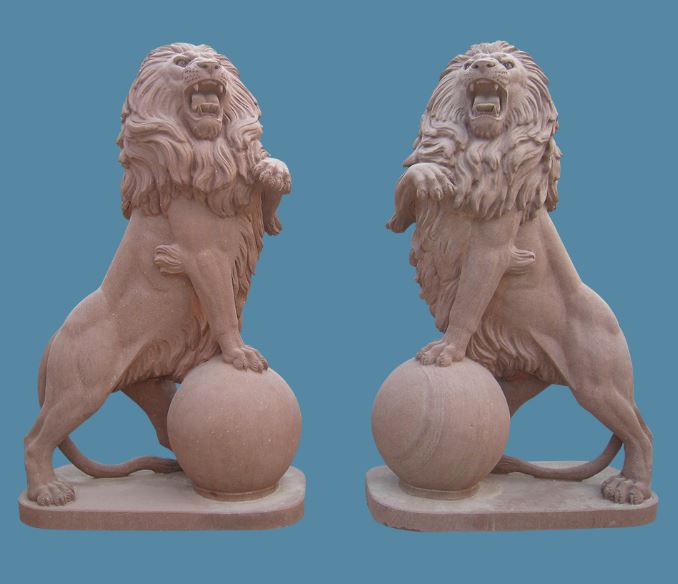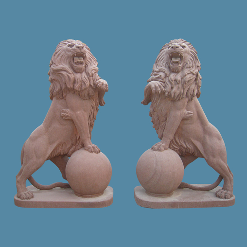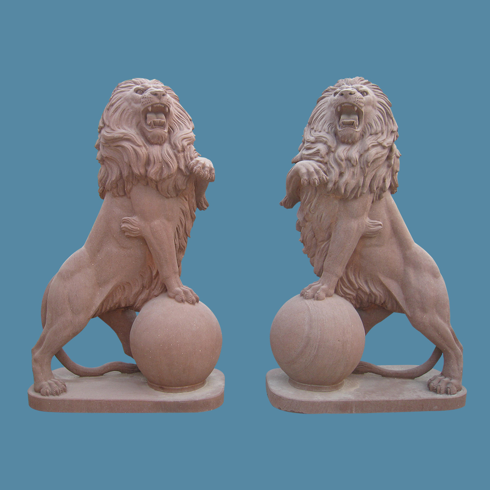 Character : Natural stone / solid and hard / honed finish / red color.This set of amazing stone lions with round ball. Use a red sandstone to carve the full body and pedetal. All the strong muscles, faces and hairs show upgrade art work. Enjoy his terrrifying glory to guard over your home. Contact us immediately to get more information about purchase.