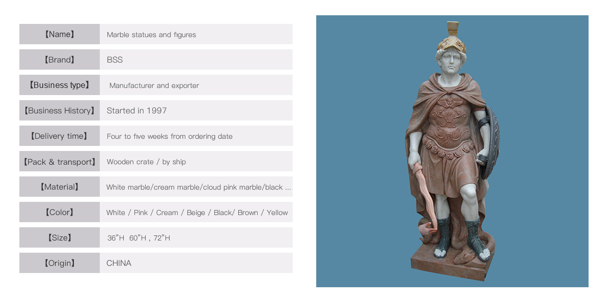 This beautiful Roman warrior statue ishand-caved in a few beautiful natural marble.