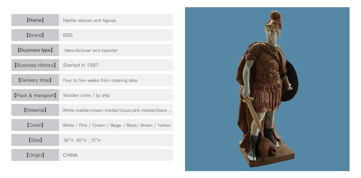 This beautiful Roman warrior statue ishand-caved in a few beautiful natural marble.