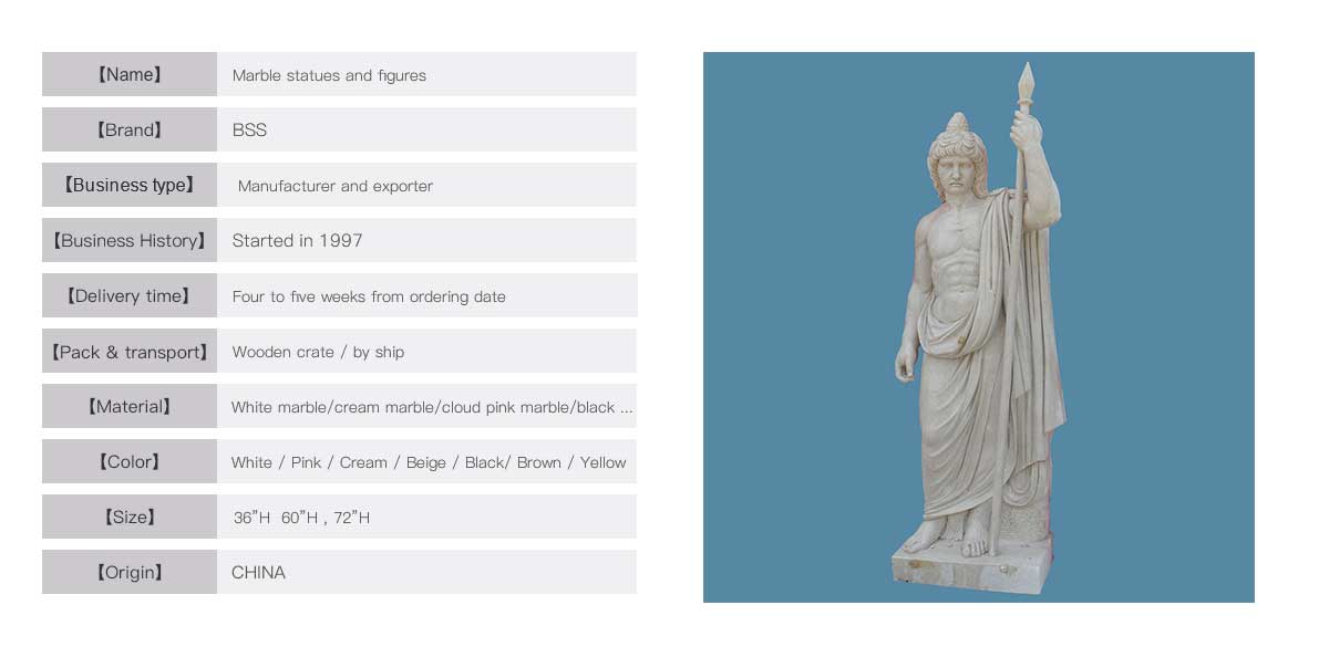 A truely amazing warrior statue with hisspear weapon is carved from a warm tone marble.