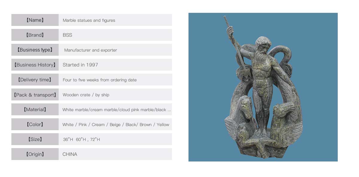 This gorgeous Sea God statue is one offamous Greek fairy tails made from one whole piece dark green marble. We haveseveral Neptune figure statues with different designs made in marble.