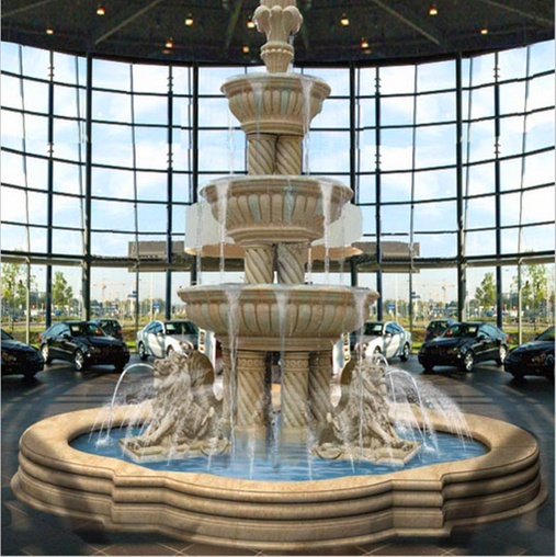 The carved lions, columns and water bowls are full of this amazing fountain. Dimensions can material can be custom made.
