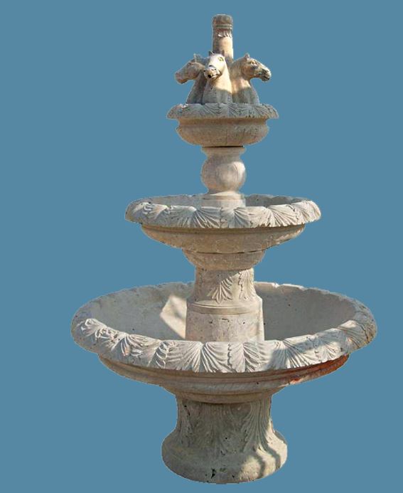 Character:Natural stone/solid and hard/polished/cream color. It is a very elegant water fountain from natural travertine with unfilled holes. The nicely carved horses head, leaves all details around this fountain to create an amazing sculpture work to enhance the beauty of your estate. Many fountains are in stock for immediate delivery to any sea port or to your home address. Send us a message to get more information about it.