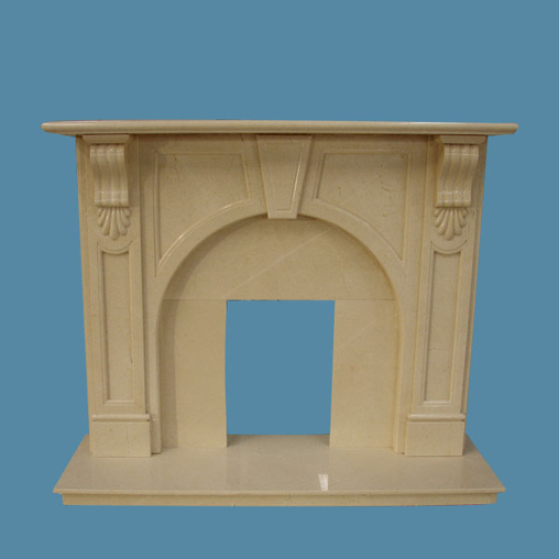 Character : natural marble / solid with veins / polished / cream color.The is one of major mantel designs which is sold very well in Europe. Common size is 54” and 60”with standard opening 36”x36”, popular material is white marble and cream marble. Hearth and back panels can be included to suite this surround well. One 20ft container fit about 65 mantels and delivery time is 3 weeks to ship.