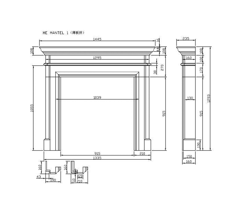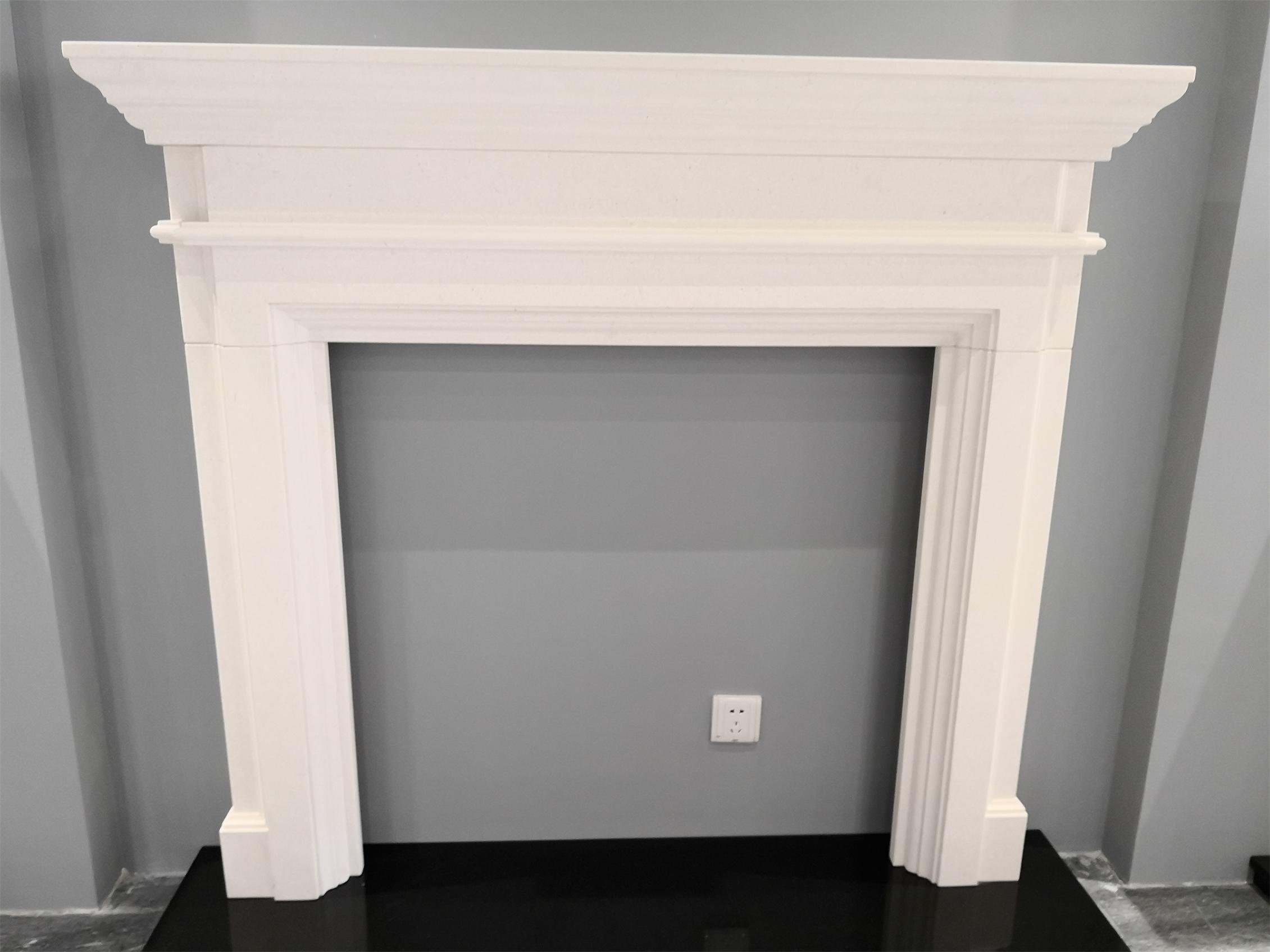 The “Teramo” fireplace mantel is nicely made inwhite limestone blocks for UK market. Material can be changed in micro ornatural marble too. It is normallysuited with granite hearth and back panel or cast iron.