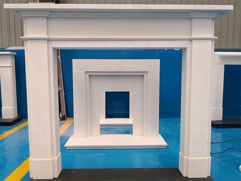 This “Devonshire”mantel surround in White limestone is sold well in UK market. Material can bechanged in micro or natural marble too. It is normally suited with granite hearth and back panel or cast iron.