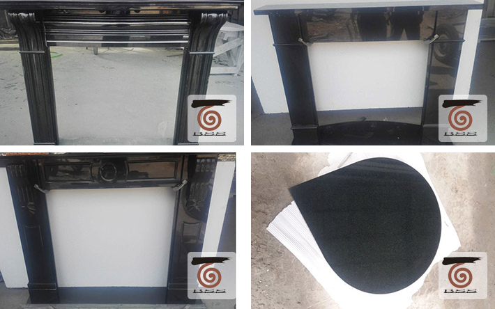 China black granite sets and marble fireplaces surrounds are delivered to Ireland. We regularly supply black granite hearths and panels and artificial marble fireplaces mantels to distributors in UK and Ireland. There are three mirco marble are used well for fireplace mantels, the cream, ivory pearl and white. Also, natural cream marfil and white marble are still used in China marble stone fireplaces. Main sizes are 54”x18”, 60”x18” and 37’x37”.