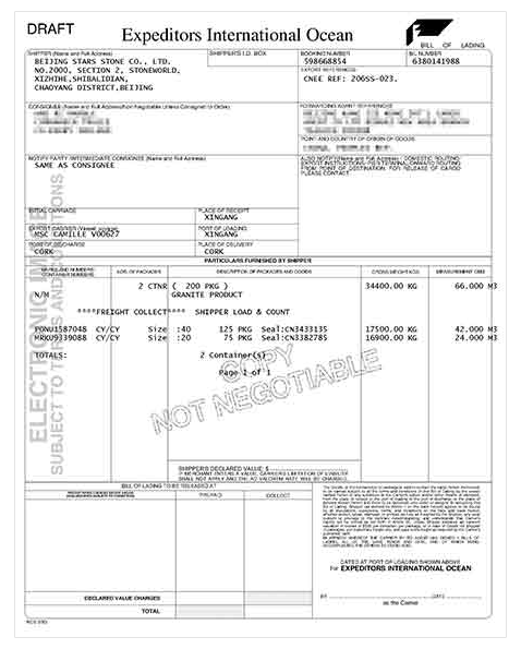Description: marble stone fireplaces and black granite, 2 x 20ft containers.