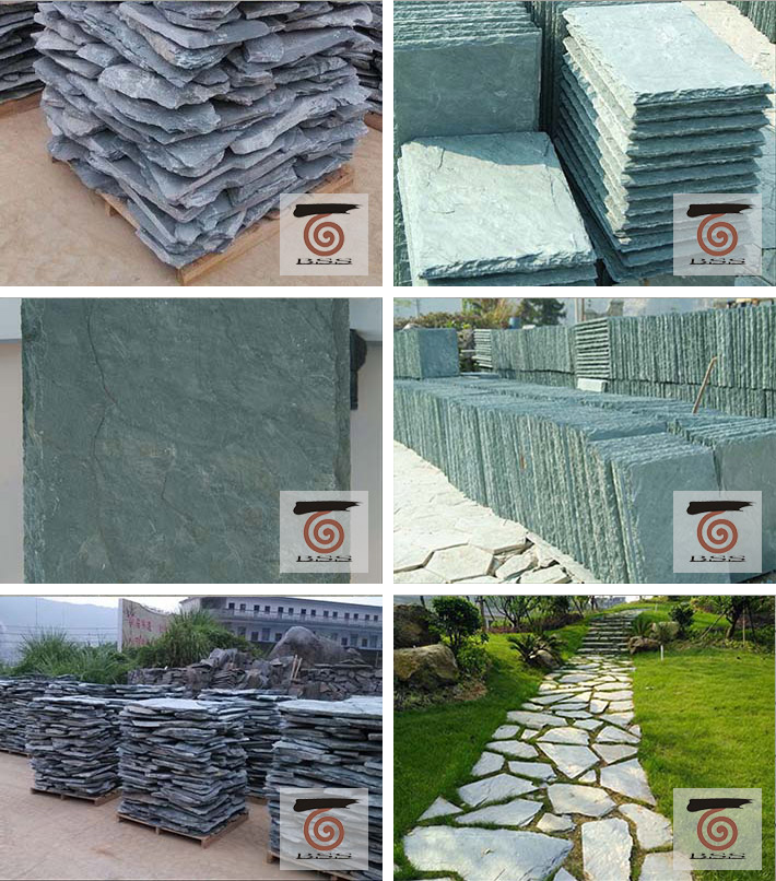 Slate Flooring tiles ,especially green slate flooring tiles and roofing tiles is very popular in European market for installation of the roofing , wall cladding ,paving etc . Slate Flooring tiles can be cut with any size you want and required thickness ,the surface of the slate flooring tiles normally is natural split , backside can be calibrated or uncalibrated . For Slate paving flagstone , the diagonal normally 30-50cm or over 60cm , for European market we sold both of this two size for many project and customers . The available color for the slate flooring tiles can be Green , black , rusty , yellow or brown . The most popular flooring tiles is Yellow quartzite , black slate and rusty slate . Max size we can make for the black slate is 2400x1200mm as slate billard board or slate paving . For More details about the price of the slate and quartzite for slate flooring tiles ,slate roofing tiles and random flagstone , pls contact with us via sales@slate-quartzite.com or sales@starstone.sina.net . We would like to provide more useful information