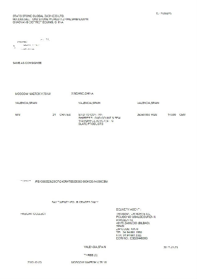 SHIPMENT :FROM XINGANG,CHIAN TO VALENCIA,SPAIN