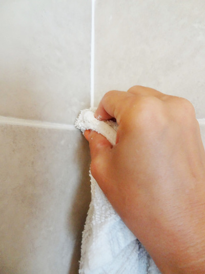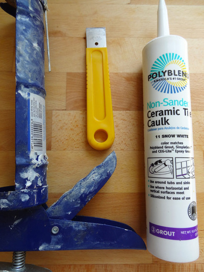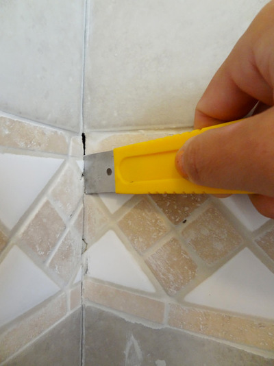 Tip: Use a color match guide to match the existing grout to the tile caulk. You can pick one up in the tile and grout section of a home repair store.