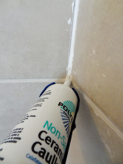 Then we applied the caulk to the opening. The tile caulk is siliconized grout to allow for the application to flex with the home's movement without cracking.