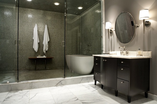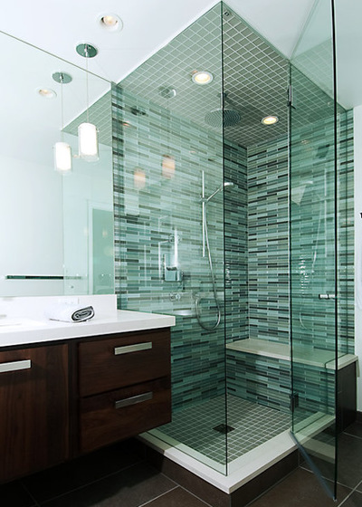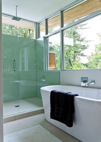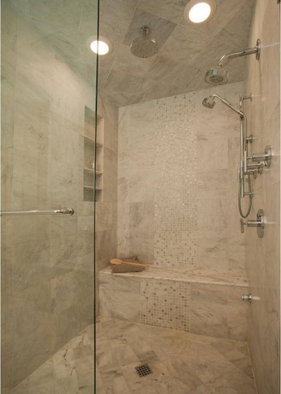 8. Keep cleaning in mind. If you hate cleaning your shower, use larger slabs or glass panels, since they making cleaning much easier than small mosaic-type tiles.