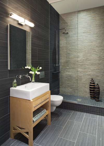 7. Consider universal design.Pick a large-format tile and a one-way slope for easy access to the shower if you plan to age in your home. Using one tile throughout the installation can also make the room look much bigger.