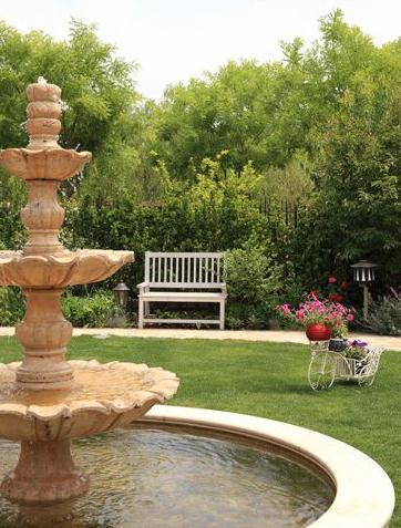 The construction of a neat lawn can let the children barefoot play, cycling style flower rack more here to add a quiet taste. The fountain in the center of the lawn is filled with a strong European style, highlighting the European style of the entire garden ornaments. High fountain to enhance the level of the garden ornaments, but also allow people to line of sight to the sky.