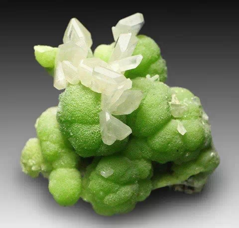 Calcite and fibrous green copper and zinc ore