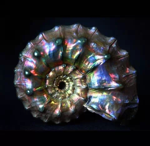Variegation Ammonite (Ammonite) about 80 million to more than one hundred million years, which are found in alberta, Canada, because the surface gloss layer spacing between the diffraction effect, make its distinctive similar opal change color. Variegation ammonite main composition of calcite, it is a kind of ammonite fossils, transformed into the underground by the tens of millions of years, after due to crustal movement, the Rocky Mountains to complete in the world.