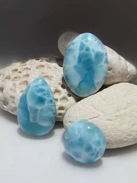 Beautiful sea grain stone (larry) as the name implies, is a sea of blue, and the blue-green sea wave form of white, under the action of light, the geometry of a plaque plaid beauty. This beautiful and rare mineral is said to be the only place in the world where there is only a Dominican republic, with very few production.
