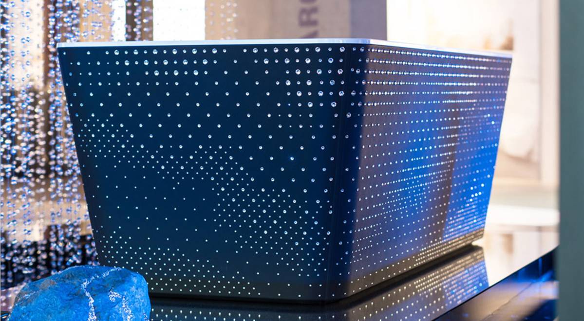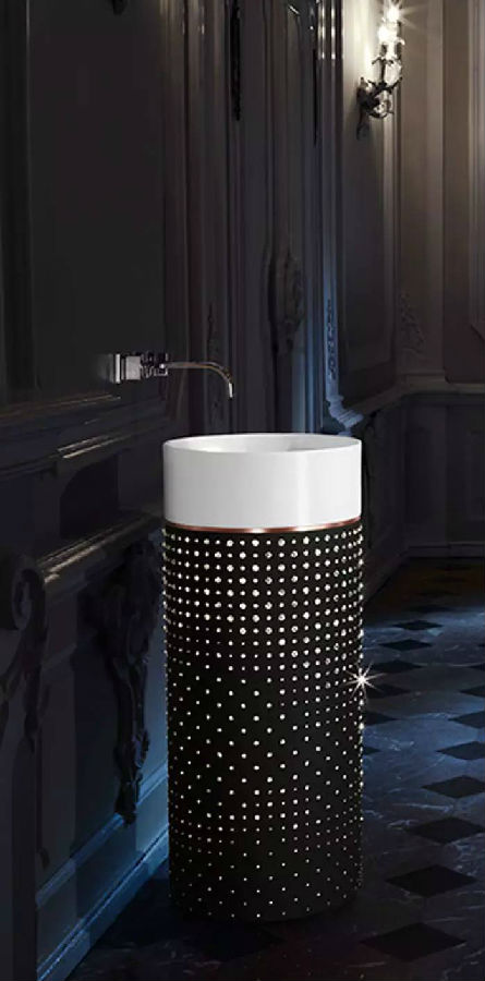 The Octagan Washbasin and Scarlet Crystal marble tubs are made of a leather-wrapped inner wall and a base for support, making a sparkling effect with classic gemstones and crystals. The combination of exclusive crystal craftsmanship and award-winning design makes this series a true masterpiece.