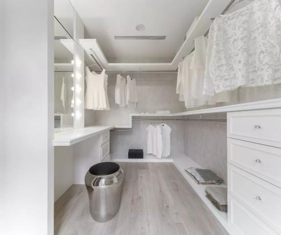 "Inverted L-line board" is the design of the spindle, the right side of the TV wall to the main bedroom dressing room wall, and then extended to the main bedroom door on the wall, is a coherent design.