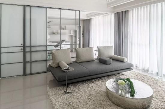 The sofa is the selection of the French brand ligne roset, Tan designer picks a free to adjust the position of the back of the sofa, according to the context of the conversion form, not only to meet the owners "to be able to comfortably lie" needs, but also to avoid the traditional L Type of sofa, dull, standard; and because of backrests can be adjusted with the user needs to increase the degree of mutuality between husband and wife honey degree.