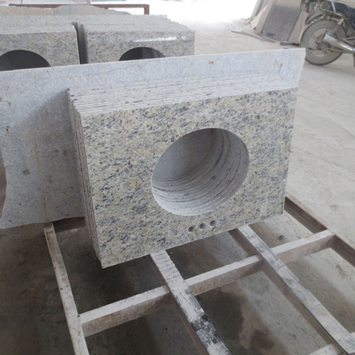 All these granite vanities are drilledfaucet holes and oval undermount cutout.