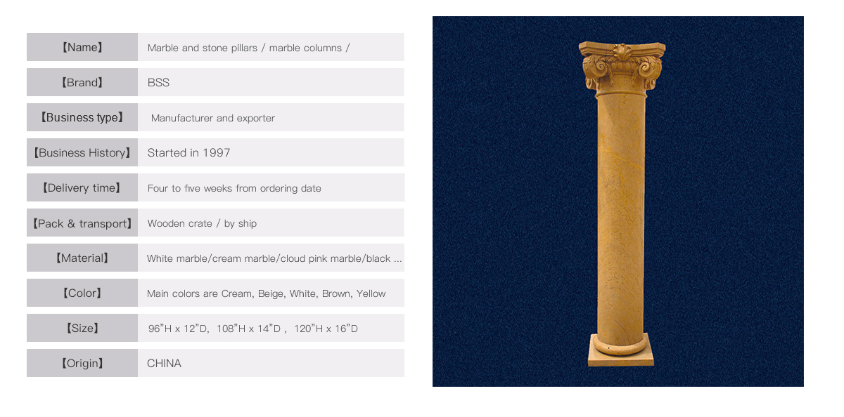 Packed in strong wooden crate andtreated well, each column is packed inone crate.