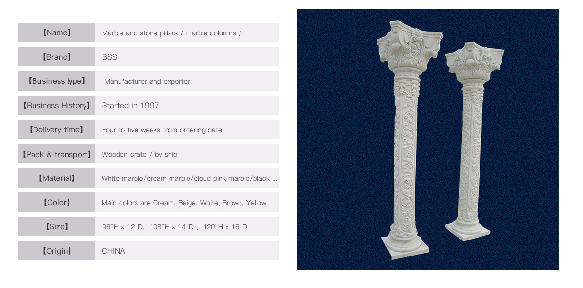 The special carved marble pillar full of carving flowers on shaft and capital,really show amazing hand workmanship for top end houses. The beautiful and elegant carving details in natural light tones, willenrich your home with majestic beauty.