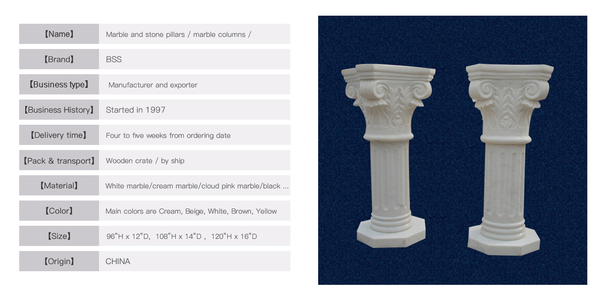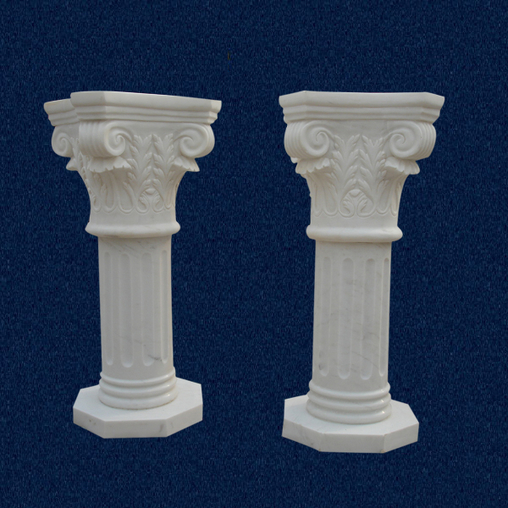 This beautiful column design is finely carved on top, round with grooves on shaft and Octagon shaped base. It is made in popular and strong white marble, in three sections. Single unit can be easily handled by one person. The size is normally from 32” to 48” height which is mainly placed inside of house. Custom design can be made by us and delivery time is 2 weeks to ship.