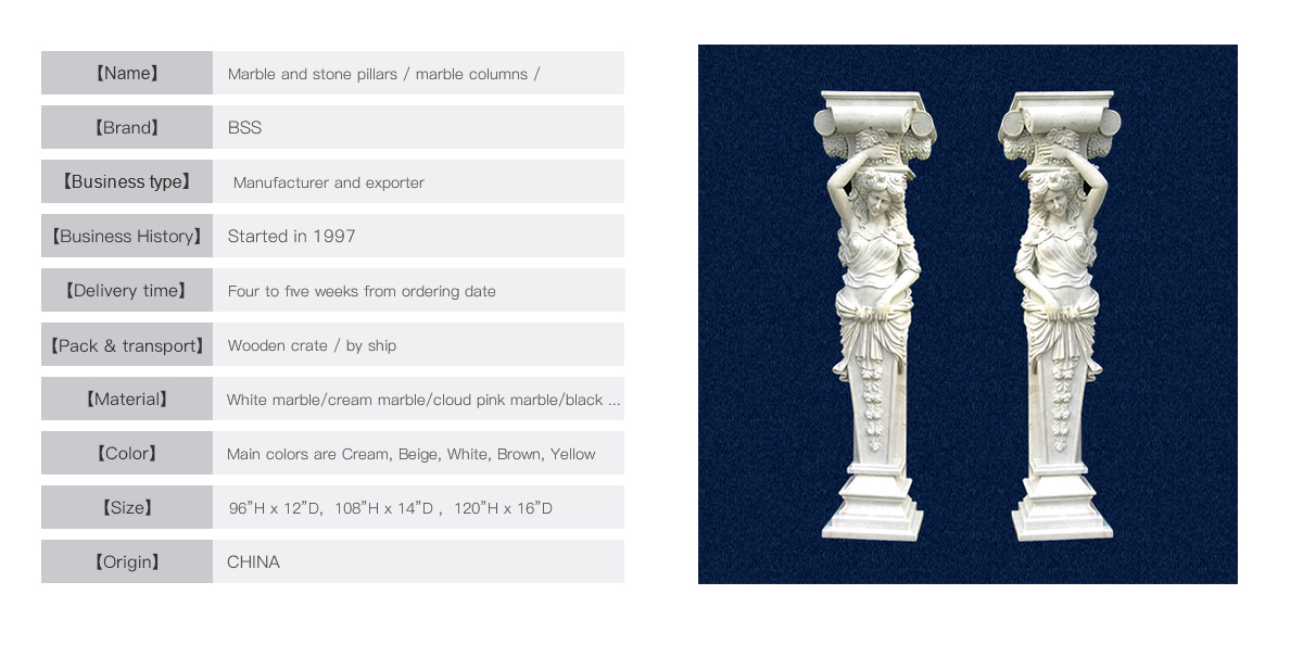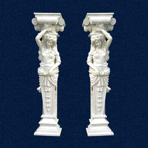 Such amazing columndesign are finely made by our craftsman with lady figures in popular and strongwhite marble. The hand-carved flowers,grapes and statues around the whole pillar to show upgrade marble piece todecorate your house better. Contact ustoday to get more information