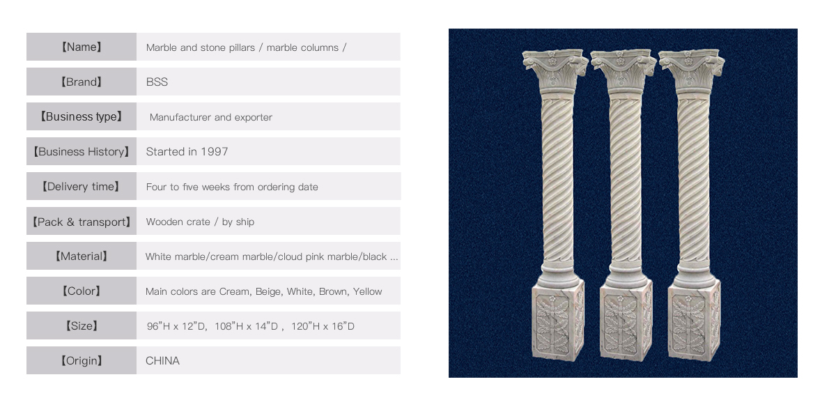 Packed in strong wooden crate andtreated well, each column is packed inone crate.