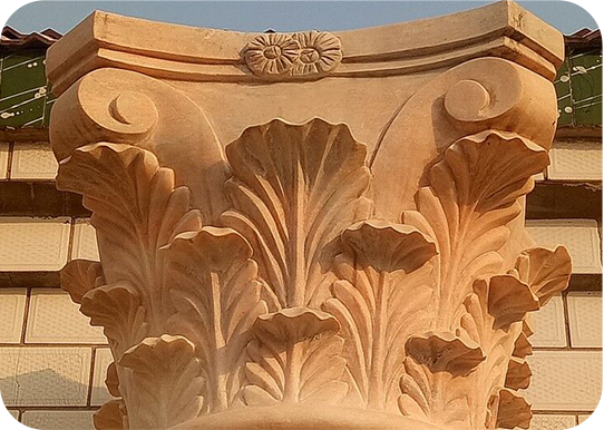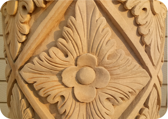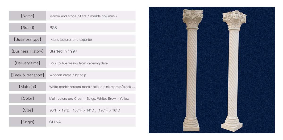 The stone column with carved crown to show beautiful work for luxury house. It also contains twisted pillar shaft body to make inside hollow to wrape concrete or metal base. Any dimensions can becustom made to suit job site.