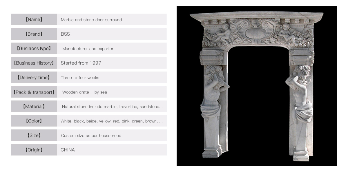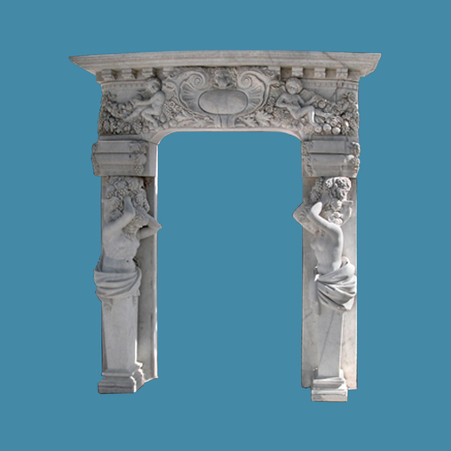 Thismarble surround in solid marble carved with European style figures on two sidesand top . The antique finish displays beautiful and timeless elegance. Thenatural with middle tones color, a indeed fantasic stone works made by superstone carvers.