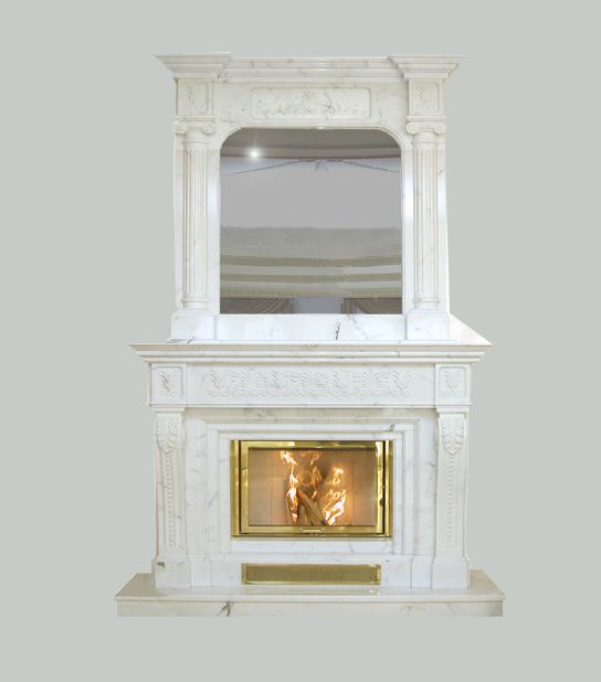 This amazing fireplace withovermantel, is finely hand carved in avery white marble. All gorgeous marble carvings and patterns are decorated wellon this grand fireplace to display in your luxury home. Material and dimensions can be custom made atyour needs. Contact us to get more purchase information immediately