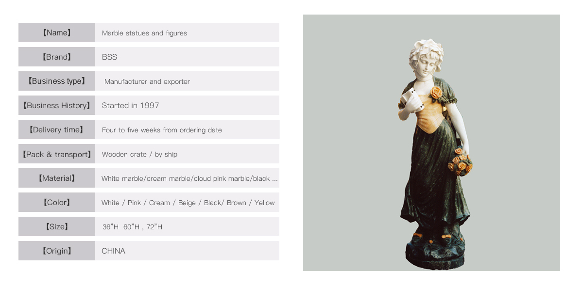 Thisexcellent girl statue is fully hand-carved by our craftsman in several types ofmarble.