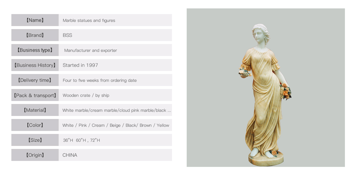 Thisbeautiful lady figure is finely made by our carving team in white and pinkmarble.