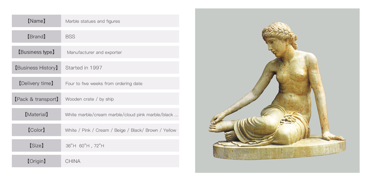 Character : Natural marble / solid with veins / polished / yellow color.This beautiful nude girl statue is hand-carved by our sculptor in our local yellow marble.